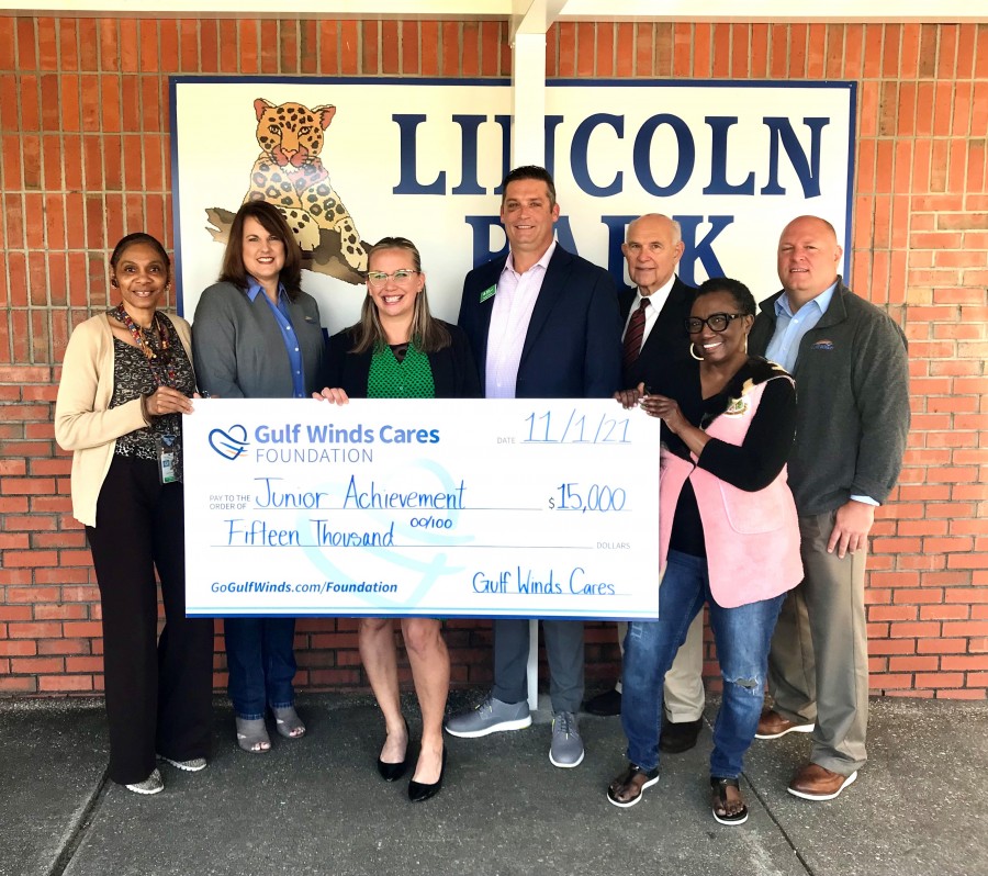 Ashlee Simpson, of Junior Achievement of Northwest Florida stated, “We are beyond grateful for the support of the Gulf Winds Foundation. The financial adoption of such a deserving school will allow the students of Lincoln Park Elementary to gain tools to change their futures. With Gulf Winds Foundation’s generous donation, we will be able to reach well over 200 students with essential financial literacy, work readiness, and free enterprise education.”