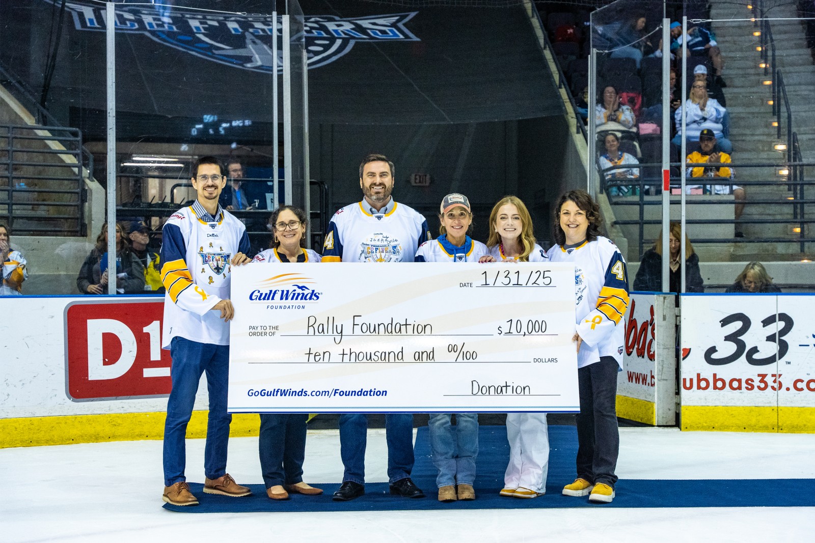 We proudly partnered with the Pensacola Ice Flyers in support of its Rally Foundation Night, a fundraiser dedicated to supporting childhood cancer awareness. During the game, we gifted the Rally Foundation $10,000 to support childhood cancer research.