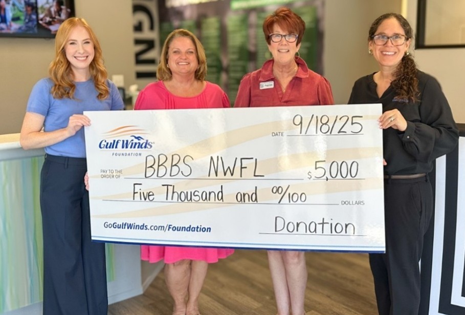 Big Brothers Big Sisters of Northwest Florida offers mentorship that is transformational for the youth in our community. Gulf Winds was honored to make a $5,000 donation in hopes to create bigger opportunities for each child to receive guidance.