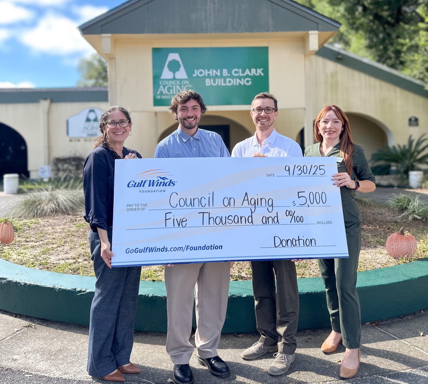 Gulf Winds was proud to contribute a $10,000 gift as a long-standing supporter of Council on Aging of West Florida. We presented the first half of the donation--$5,000—as part of a month-long matching campaign, focused on expanding critical services to promote nutrition, socialization, and movement for seniors.